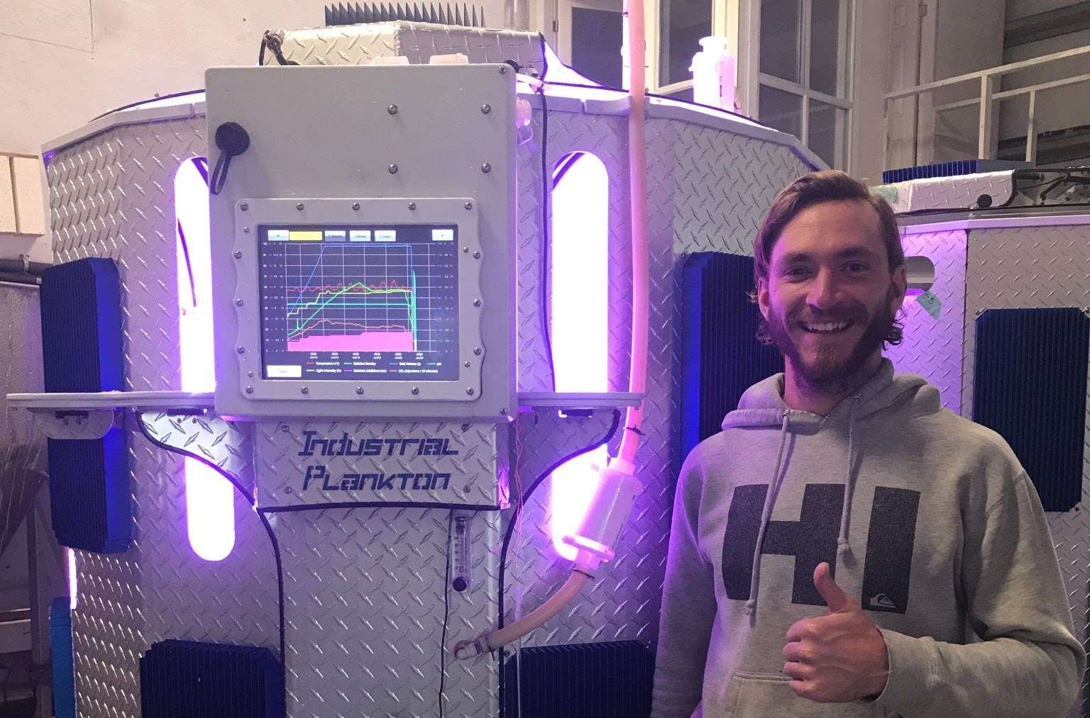 Sébastien, who in charge of phytoplankton production, has now has the goal to beat the culture records in the PBR Industrial Plankton.”